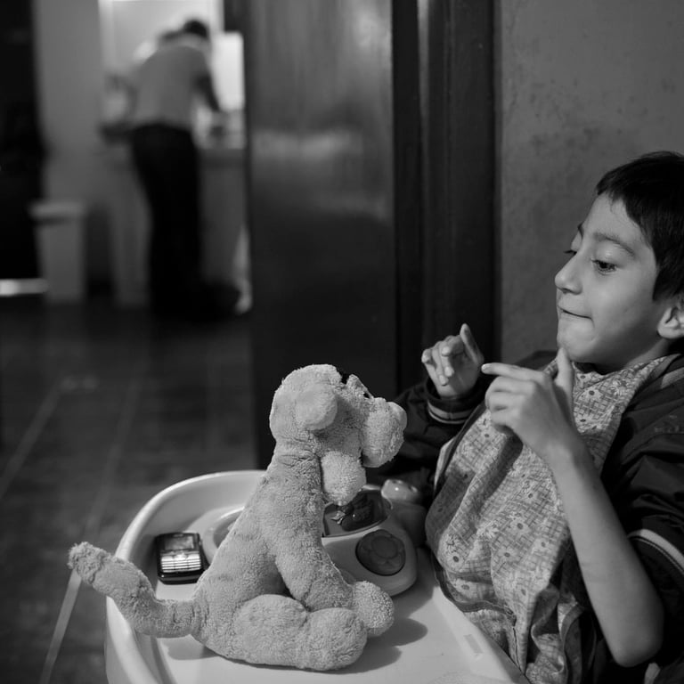 Mateo is a quiet kid and barely interacts at the foundation. But at home, he is a different person. Often smiling, laughing and often playing with his favorite toy “Tigger”. In fact he likes the Tigger so much that he has two of them, the second one is a 3 foot tall which he sleeps with. His little sister Catalina is often next to him, trying to entertain and play with him. Mother Liliana and father Fabricio make every effort to make Mateo’s life as easy as possible with utmost care and dignity.